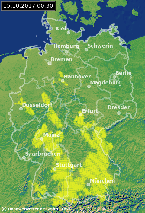 Radarbild von Sonntag, 15.10.2017 um 00.30 Uhr