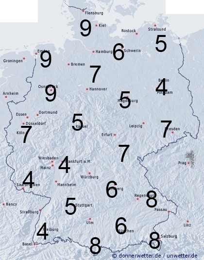 Gebietsweise fällt Regen oder es kommt zu Schauern. Sonst entsteht leichte Benetzung durch nächtlichen Strahlungstau. Die Benetzungsdauer liegt in Deutschland allgemein zwischen 3 und 10 Stunden.