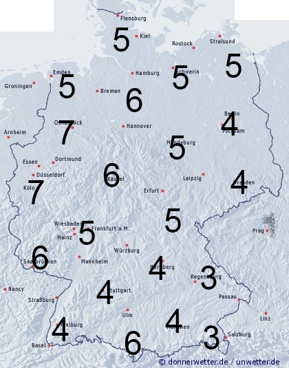 In Deutschland sorgen Regenfälle und Schauer für eine Benetzungsdauer von 3 Stunden in Bayern und bis zu 7 Stunden in NRW.