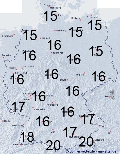 In Deutschland fällt reichlich Regen. Die Benetzungsdauer liegt meist zwischen 15 und 20 Stunden.
