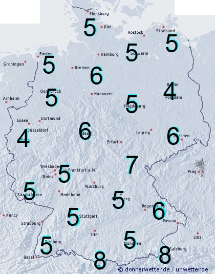 Vor allem im Osten und an den Alpen kann es noch zu einzelnen Schauern kommen. Sonst entsteht leichte Benetzung durch nächtlichen Strahlungstau. Die Benetzungsdauer liegt allgemein in Deutschland zwischen 4 und 9 Stunden.