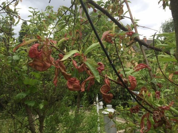 Auch aktuell sind wieder viele Pfirsichbäume von der gefürchteten Kräuselkrankheit befallen. Anzeichen hierfür sind gelbgrüne bis rötliche Verdickungen an den Blättern, die dadurch deformiert wirken. Als Folge fallen die Blätter und auch die Früchte meist schon vorzeitig ab. Dadurch verliert die Pflanze ihre Frosthärte und auch im darauffolgenden Jahr ist mit einer reduzierten Ernte zu rechnen.