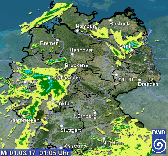 Radarbild vom Mittwoch, 01.03.2017 um 01.05 Uhr