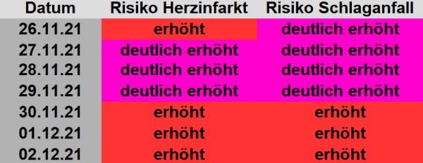 Das Frühwinterintermezzo beschert uns in den kommenden Tagen zum Teil deutlich erhöhte Schlaganfall- und Herzinfarktrisiken. Schonen Sie sich!