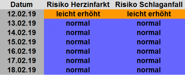 Seit Jahren ist bekannt, dass atmosphärische Veränderungen zu einer Häufung von Schlaganfällen und Herzinfarkten führen können. Insbesondere bei schnellen Änderungen von Temperaturen kommt es einem Anstieg von Fällen bei Risikopatienten. Besonders Menschen mit Vorerkrankungen sind betroffen. Das Wetter ist allerdings nicht die Ursache des Herz- Kreislaufproblems, sondern Vorschädigen zusammen mit Wetterstress führen zum akuten Auslösen des Herzinfarktes oder Schlaganfalles.