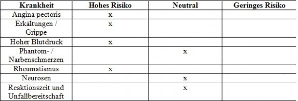 Der schwankende Luftdruck belastet zahllose Wetterfühlige. Es besteht insbesondere eine Neigung zu Kopfschmerzen und Migräne, rheumatische Beschwerden und Koliken sind ebenfalls möglich.