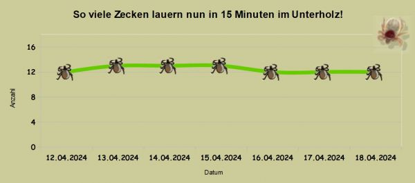 Mit steigenden Temperaturen am Wochenende werden weitere Zecken aktiviert; vor allem an den Stellen, an denen Niederschläge fielen oder fallen.