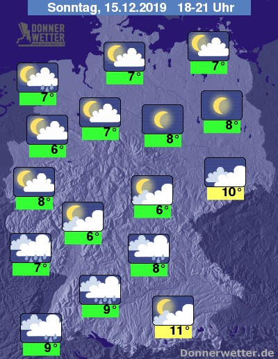 In der Nacht zum Montag bleibt der Himmel über dem Land weitestgehend wolkenverhangen, dazu fällt über der Südhälfte auch gebietsweise Regen, während es weiter nach Norden hin trocken bleibt. Die Temperatur sinkt auf 8 Grad im Breisgau und bis 2 Grad im Berliner Umland.