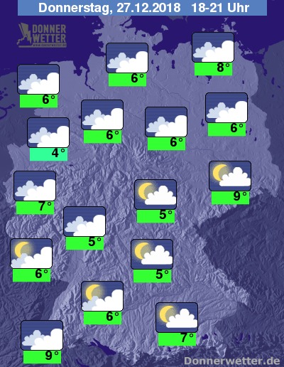 Am Abend dominieren im Norden die Wolken, Regen fällt jedoch kaum. Nach Süden hin zeigen sich zum Teil auch Mond und Sterne. Gebietsweise ist es auch neblig-trübe.