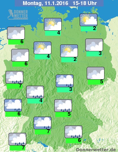 Heute Abend ist es im Nordosten noch meist locker oder aufgelockert bewölkt und dazu weitgehend trocken, sonst ziehen auch im Norden, wie bereits im übrigen Bundesgebiet dichte Wolken auf, die im weiteren Verlauf für Regen, teils auch für Schneeregen sorgen, stellenweise besteht Glättegefahr! Im Süden und Westen fällt nur noch gebietsweise etwas Regen, zumeist bleibt es hier trocken, jedoch auch meist stark bewölkt. Die Abendtemperatur liegt bei 6 Grad in Aachen und um 0 Grad in Vorpommern. Über der Südhälfte weht ein teils starker Wind.