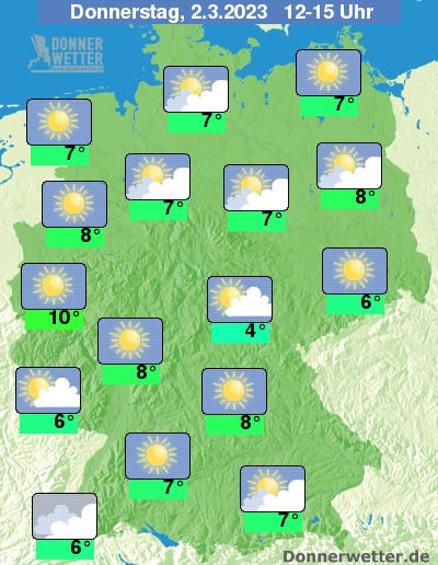 Heute Nachmittag ist es überwiegend heiter oder sonnig. Südlich des Mains ist es zum Teil auch stark bewölkt oder neblig-trüb. Es bleibt bundesweit trocken bei Temperaturen von 4 Grad im Eichsfeld und bis 10 Grad im Rheinland.