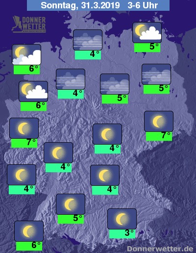 In der Nacht zum Sonntag klingen letzte Schauer im Norden und Nordwesten ab und es lockert und klart auch hier mehr und mehr auf. Im übrigen Land ist es ohnehin schon verbreitet sternenklar, dazu bleibt es trocken. Die Temperatur sinkt auf 7 Grad in der Kölner Bucht und bis 3 Grad in Berchtesgaden.