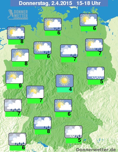 Heute Nachmittag halten sich insbesonders im Süden des Landes weitgehend dichte Wolken, dazu fällt häufig Regen, teils auch Schneeregen oder Schnee. Auch weiter nach Norden hin ist es oft noch stark bewölkt und es bilden sich einzelne, teils kräftige Regen-, Schneeregen- oder Schneeschauer, gebietsweise kann die Bewölkung aber auch auflockern und der Sonne Platz machen. Die Temperatur liegt bei 4 Grad im Grabfeld und 9 Grad im Rheinland. Der Wind weht frisch, teils auch noch stark, dabei sind stürmische Böen, am Alpenrand, an der See und auf den Bergen sind anfangs noch Sturmböen möglich.