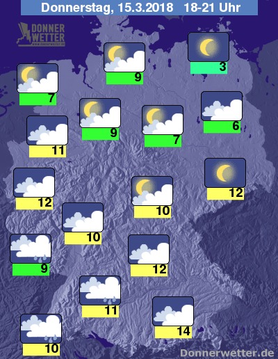 Bis zum Abend wird die Wolkendecke auch im Norden zunehmend dichter, die Sonne scheint zunächst noch vor allem zwischen Rostock und Dresden. Im Rest des Landes bestimmen hingegen dichte Wolken das Bild am Himmel und die Sonne zeigt sich nur vereinzelt. Zwischen Pfalz, Schwarzwald und Schwäbischer Alb fällt zudem vereinzelt etwas Regen.