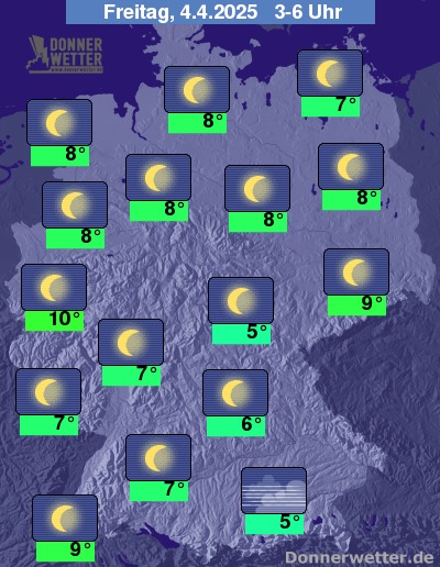 Die Temperaturen gehen in den frühen Morgenstunden zurück auf Werte um 10 bis 5 Grad.