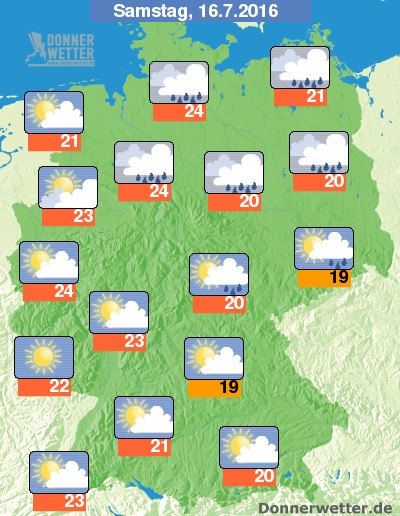 Am Samstag ziehen vor allem im Norden und Osten meist dichte Wolken durch und es fällt zeitweise Regen. Weiter nach Südwesten hin bleibt es dagegen meist heiter oder aufgelockert bewölkt und trocken. Es werden 19 bis 24 Grad erreicht!