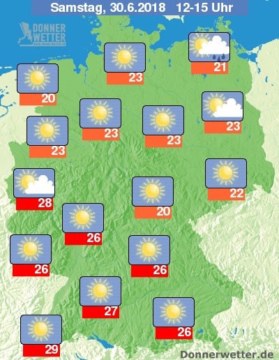 Der Mittag und frühe Nachmittag beschert weiten Teilen des Landes strahlenden Sonnenschein, nur entlang des Rheins sowie an der Oder können auch mal lockere Wolken durchziehen, Schauer sind aber die Ausnahme