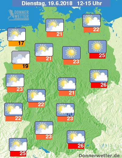 Heute Abend können sich im Nordwesten und regional über Thürigen noch einzelne Schauer entwickeln. Im übrigen Land ist es hingegen verbreitet heiter oder es ziehen einige, meist lockere Wolkenfelder durch, dazu bleibt es weitgehend trocken. Die Temperatur liegt bei eher kühlen 18 Grad in Cuxhaven und bis 26 Grad in Dresden.