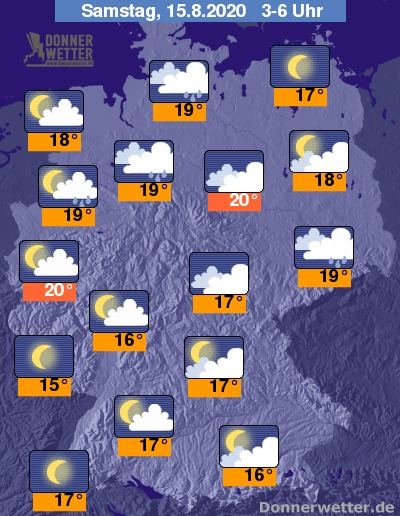 Während der zweiten Nachthälfte treten noch örtliche Schauer im Münsterland und im Osten auf. In den anderen Gebieten bekommen die Wolken größere Lücken und insbesondere im Südwesten klart der Himmel auch für längere Zeit auf.