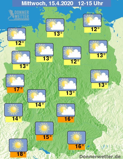 Die Temperaturen bewegen sich im Norden und in der Mitte zwischen 12 und 14 Grad, im Süden und Westen werden schon mildere 14 bis 18 Grad erreicht.