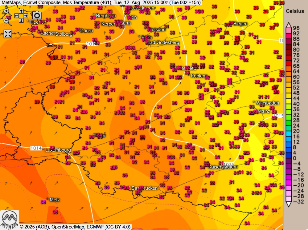 Verbreitet Temperaturen um 30 Grad am Nachmittag.