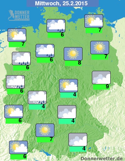 Heute ist es besonders im Süden und Osten häufig heiter oder aufgelockert bewölkt und hier bleibt es auch bis zum Abend noch weitgehend trocken. Sonst ist es zu Beginn noch oft aufgelockert bewölkt, bevor im Tagesverlauf von Westen her dichte Wolken mit Regen, teils auch mit Schneeregen oder Schee, aufziehen. Die Höchstwerte erreichen 4 Grad in Oberbayern und bis 9 Grad in Dresden.