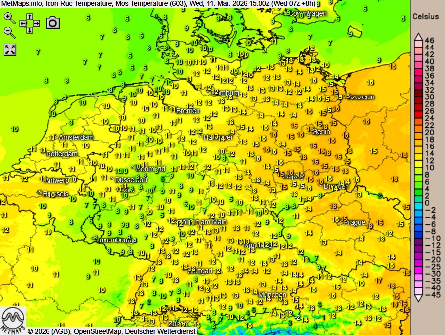 Verbreitet nasse Nachmittagsstunden, Höchstwerte um 8 bis 16 Grad.