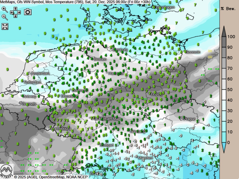 Die Temperaturen erreichen am Samstag Höchstwerte um 2 Grad im Dauernebel im östlichen Bayern, sonst um 7 bis 11 Grad.