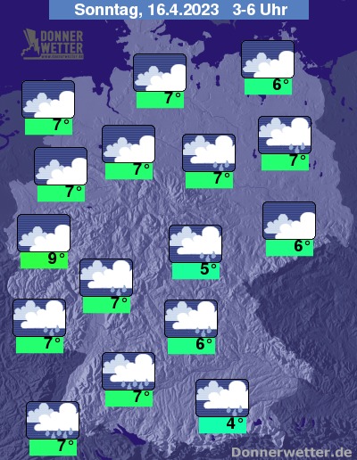 Am Sonntag ist es größtenteils stark, zum Teil auch mal aufgelockert bewölkt. Es bilden sich gebietsweise Schauer. In Küstennähe bleibt es dagegen meist trocken. Die Temperatur steigt auf nur 7 Grad im Eichsfeld und bis 13 Grad in der Lausitz.