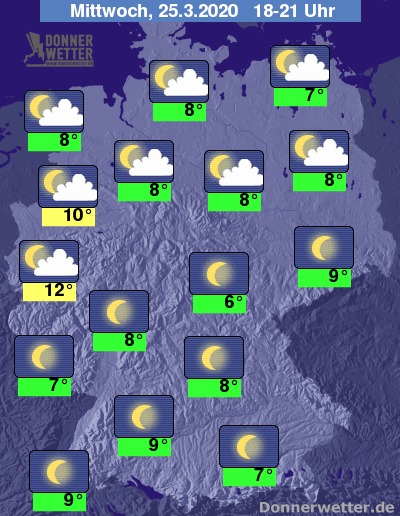 Bis Mitternacht ziehen die lockeren Wolkenfelder allmählich Richtung Niederlande und Nordsee ab und die Temperaturen gehen allmählich zurück.