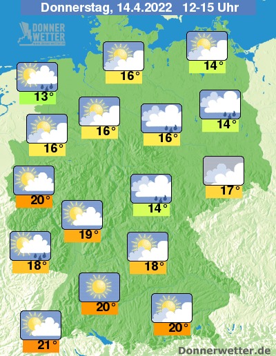 Heute Nachmittag ist es aufgelockert oder stark bewölkt. Im Süden ist es noch verbreitet heiter und trocken, während sich sonst einzelne Schauer bilden können, örtlich sind auch Gewitter möglich. Die Temperatur liegt bei 13 Grad an der Nordsee und bis 21 Grad am Oberrhein.