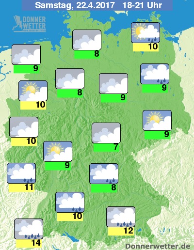 Heute Abend fällt im Süden unter dichter Bewölkung weiterhin zeitweise Regen. Im übrigen Bundesgebiet klingen die Niederschläge immer weiter ab und es kann hier und da auch auflockern, zumeist bleibt es aber stark bewölkt. Die Temperatur liegt bei 8 bis 14 Grad.