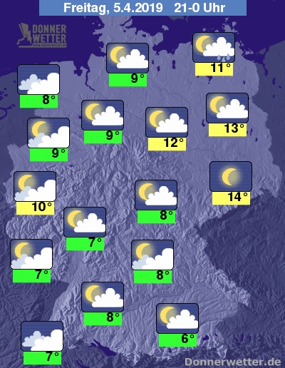 Die Temperaturen bewegen sich vor Dämmerungsbeginn zwischen 9 und 15 Grad, im Nordosten könnten stellenweise noch nahe 20 Grad erreicht werden.