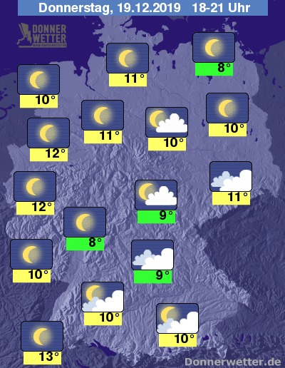 Am Abend präsentiert sich der Himmel im Lande abgesehen regionaler Nebelfelder oder tiefhängender Wolken überwiegend sternenklar oder nur leicht bewölkt.