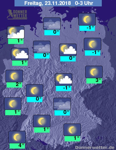 Die Temperaturen sinken auf Werte um 4 Grad C am Oberrhein und um -1 Grad C im Harz.