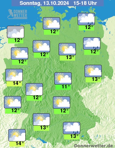 Am Sonntagnachmittag fällt am Alpenrand sowie im Nordosten noch zeitweise Regen, in den übrigen Landesteilen ist es teils heiter bis wolkig, teils aufgelockert bewölkt und es bleibt meist niederschlagsfrei.