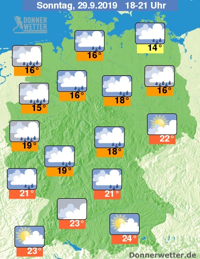 Heute Abend breitet sich der Regen von der Nordwesthälfte des Landes noch weiter nach Süden und Südosten hin aus. Südlich des Mains ist es noch oft aufgelockert, zunehmend aber auch stärker bewölkt, dabei bleibt es noch weitgehend trocken. Im Rest der Republik bringen die dichten Wolken dagegen wiederholt Regen. Die Temperatur liegt bei kühlen 14 Grad in Stralsund und bis zu 24 Grad in München.