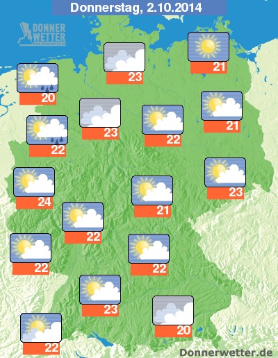 Die Wetterkarte vom Donnerstag beim Start ins Wochenende. Mehr Wetterkarten zum Deutschlandwetter.