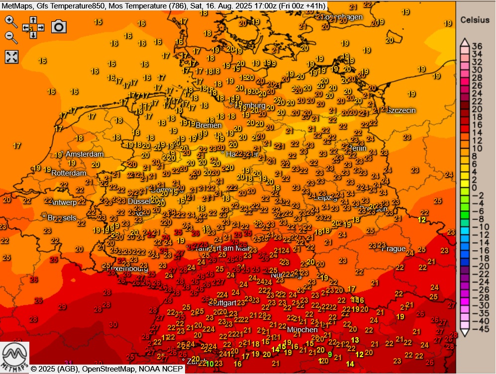 Höchstwerte am Nachmittag um 19 bis 29 Grad.