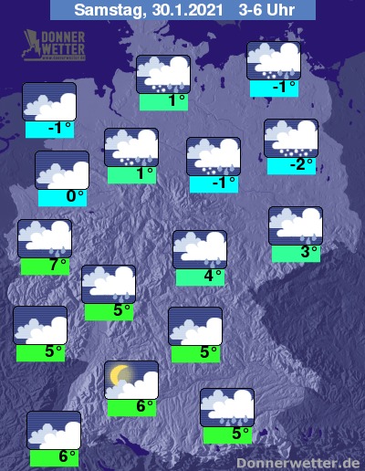 Der Samstag startet verbreitet mit einer geschlossenen Wolkendecke, im äußersten Nordwesten sind auch einzelne Auflockerungen möglich. Verbreitet muss in den Frühstunden mit Niederschlägen gerechnet werden, die im Norden und Nordosten meist als Schnee, sonst als Schneeregen oder Regen niedergehen. Häufiger trocken bleibt es am Samstagmorgen im Nord- und Südwesten Deutschlands.