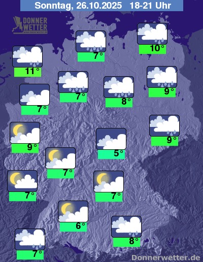 Heute Abend ziehen vor allem über die Nordosthälfte Deutschlands kompakte Wolken mit teils kräftigen und langanhaltenden Regen durch. Im übrigen Bundesgebiet ist es oft stark, teils aufgelockert bewölkt und bis auf einzelne Schauer meist trocken. Die Temperatur liegt bei 5 Grad in Jena und bis 11 Grad in Wilhelmshaven. Im Norden und Osten ist es verbreitet stürmisch, zum Teil herrscht Sturm! Weiter nach Südwesten hin weht der Wind frisch bis stark und nur selten stürmisch.