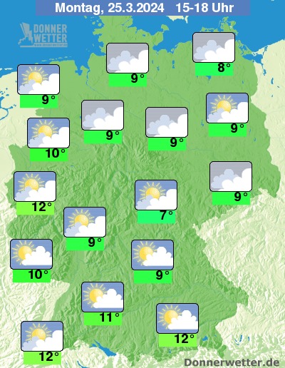 Am Nachmittag zeigt sich der Himmel über der Nord- und Osthälfte wechselnd oder stark bewölkt, es bleibt aber trocken. In den übrigen Landesteilen dominiert aufgelockerte Bewölkung oder es ist heiter. Vor allem im Süden und Südwesten scheint die Sonne auch länger von einem wolkenlosen Himmel.