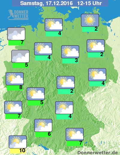 Heute Nachmittag zieht es sich im Nordwesten Deutschlands meist zu, im übrigen Land zeigen sich hingegen häufig heitere und zum Teil sogar sonnige Abschnitte. Hier und da ziehen aber auch mehr Wolken durch, es bleibt überall trocken. Die Temperatur steigt auf 2 Grad an der Oder und bis 10 Grad im Oberrheingraben.