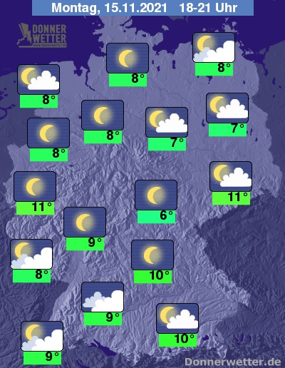 Heute Abend lockert und klart der Himmel immer weiter auf. Viele und teils dichte Wolken halten sich jedoch im Ostseeumfeld und im Südosten des Landes. Es bleibt landesweit trocken. Die Temperatur liegt bei 6 Grad in Erfurt und 11 Grad in Köln.