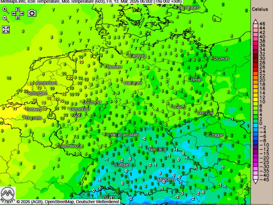 Die Temperaturen erreichen heute Höchstwerte um 10 Grad an der Nordseeküste und um 18 Grad in Ostsachsen.