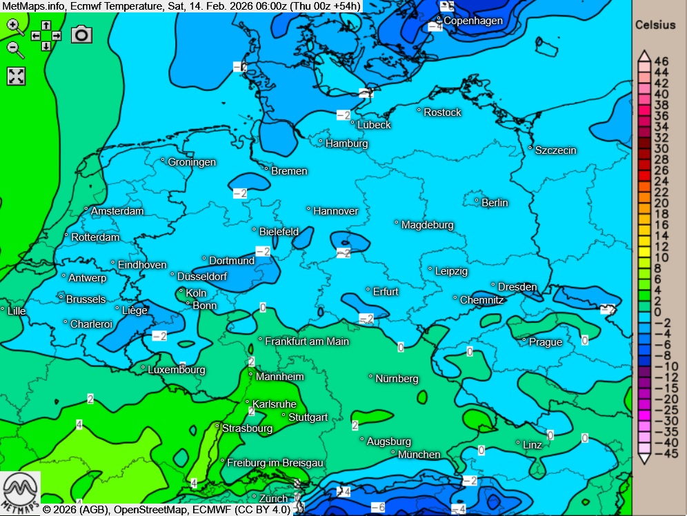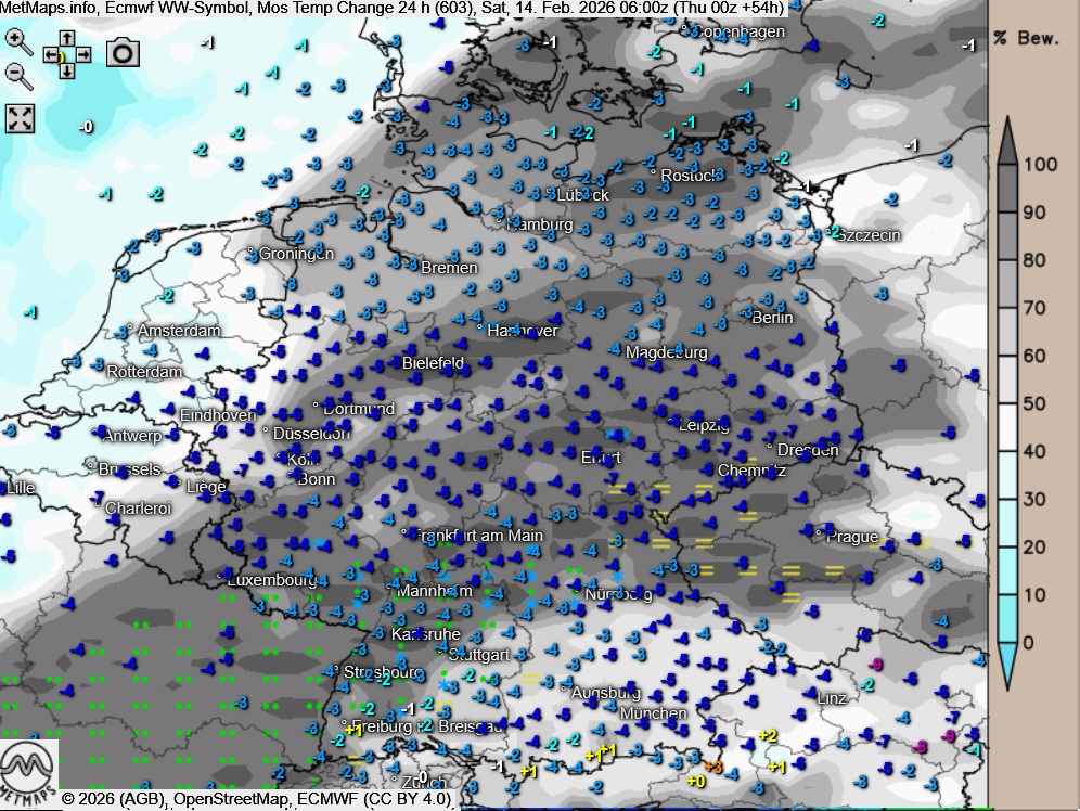 Winterlicher Valentinstag bei Höchstwerten um -3 bis 3 Grad.