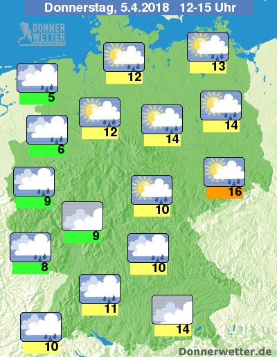 Bis zum Abend werden die Schauer dann seltener und auch im Westen kommt hin und wieder noch die Sonne durch.