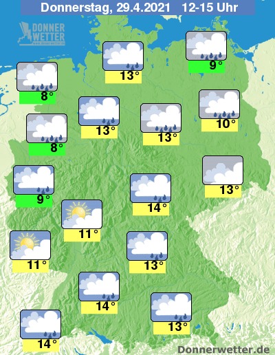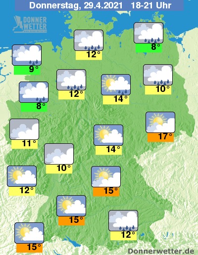 Heute Abend bleibt es über der Nordhälfte und im Alpenvorland weiterhin wolkenverhangen und es fällt vielerorts, teils schauerartiger Regen. Im Norden sind auch Gewitter möglich. Im übrigen Land zeigen sich aber auch mehr und mehr Auflockerungen und es bilden sich kaum noch Schauer. Die Temperatur liegt bei 8 Grad im Münsterland und bis 17 Grad in der Lausitz.