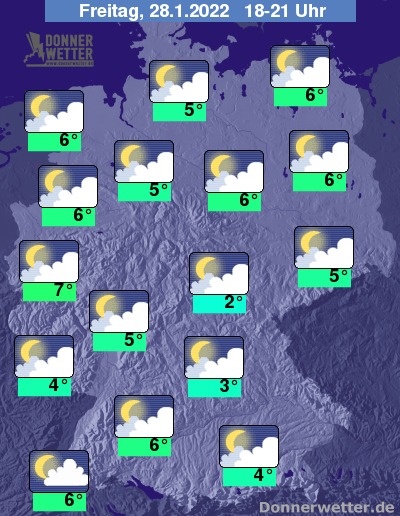 Heute Nachmittag scheint im Nordosten des Landes verbreitet die Sonne. Im übrigen Land ist es weitgehend stark bewölkt oder bedeckt, hier und da kann sich aber auch vorübergehend mal die Sonne blicken lassen. Über Bayern können sich lokale Schneeschauer bilden, sonst bleibt es trocken. Die Temperatur liegt bei 2 Grad im Grabfeld und bis 7 Grad im Rheinland.