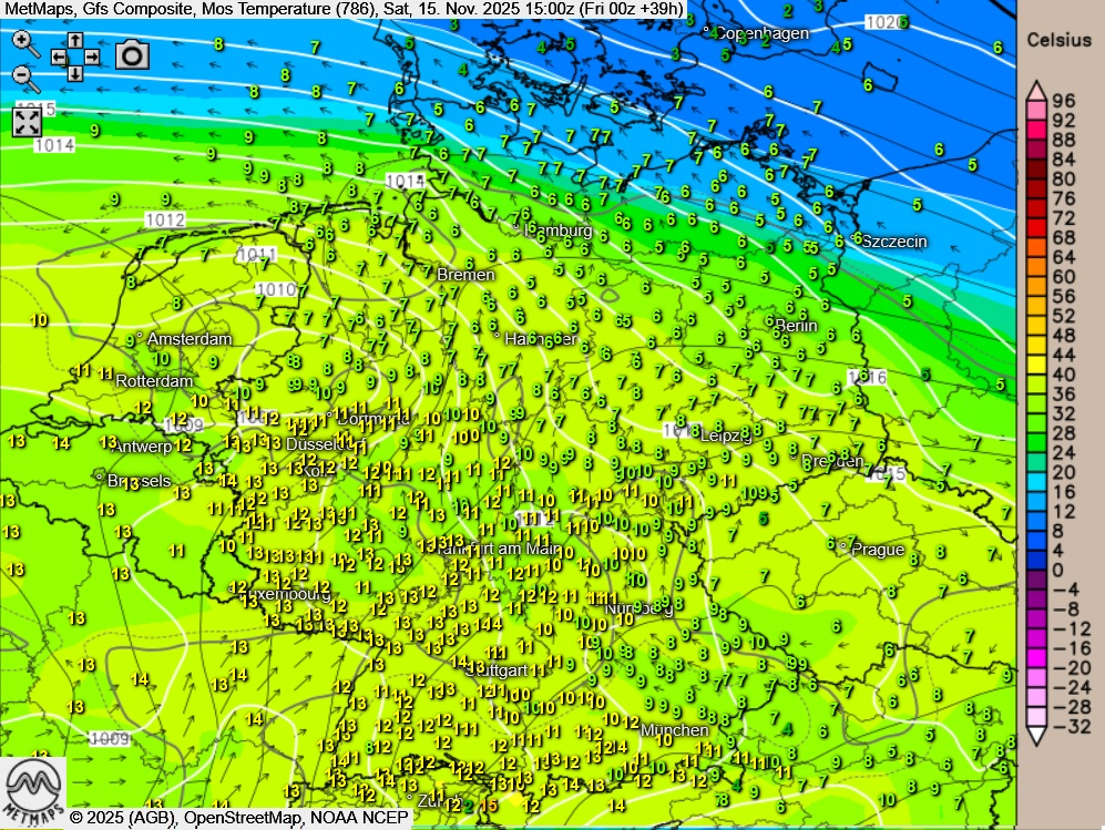 Höchstwerte um 8 bis 15 Grad.